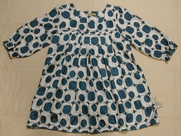 - ■タグ無新品:青系水玉?七分袖チュニック 胸からプリーツM DmQ35