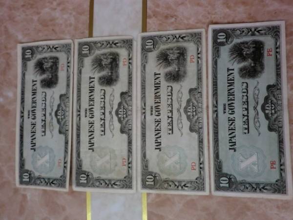 - ★ 大東亜戦争軍票 ほ号10ペソ 美品 4枚 ★ No.538-2