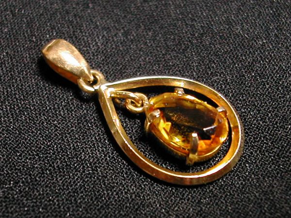 - ■美品:雫型K18枠に琥珀色の宝石が入ったペンダントトップ DmU12