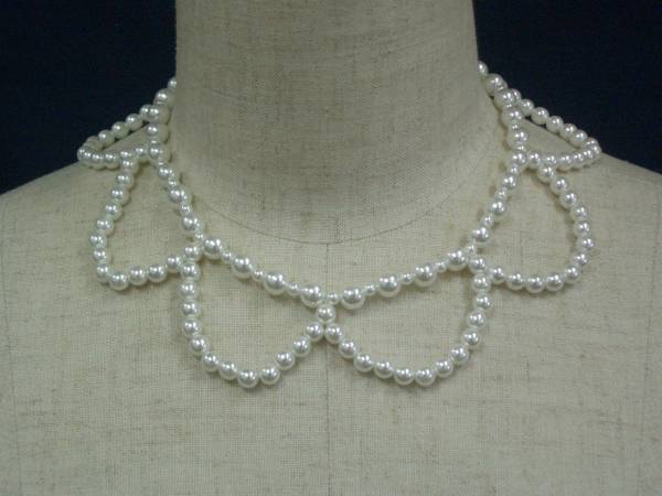 - 定形外郵便送料無料(FN-13)白いパールの編み込みネックレス