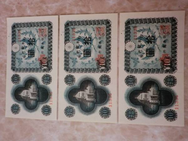 - 武生(36) ★ 日本銀行券A号10円 議事堂10円 準未使用 3枚 ★ No.100