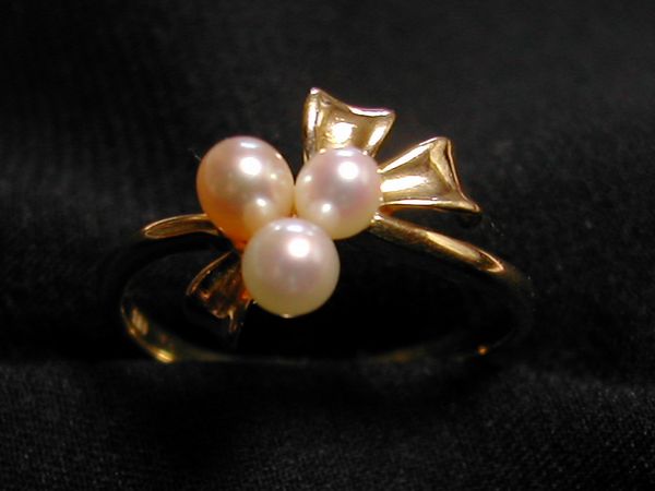 - ■美品:K18リボンとパール3玉で花のようなリング 12号 Dn144