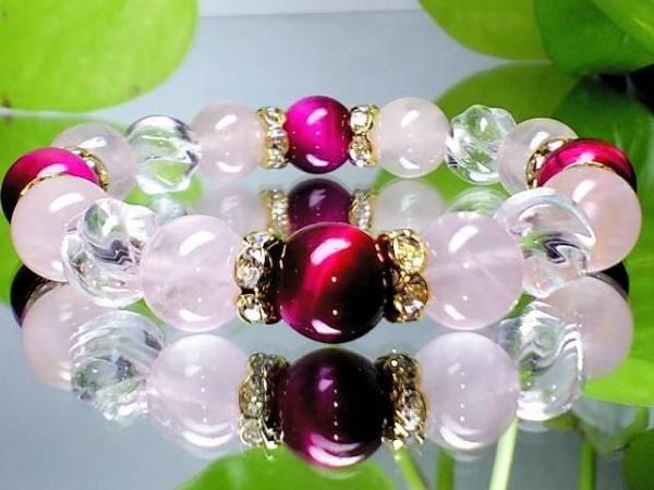 - 薄桃ローズクオーツ&ピンクタイガーアイ&トルネ-ド水晶☆