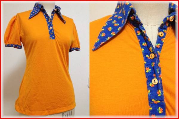 - USED☆オレンジポロシャツ パフスリーブ ビタミンカラー