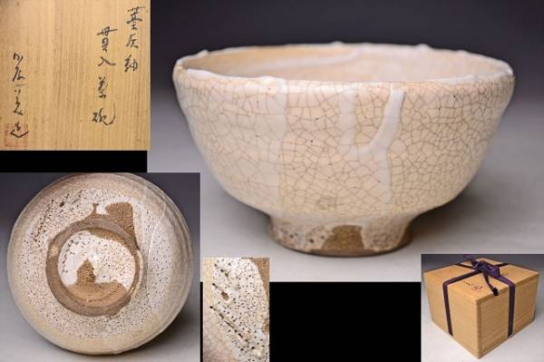 - 加藤六美 ★ 藁灰釉貫入茶碗 ★ 共箱 ★ 希少 ! ★ 検 谷川徹三 江崎一生