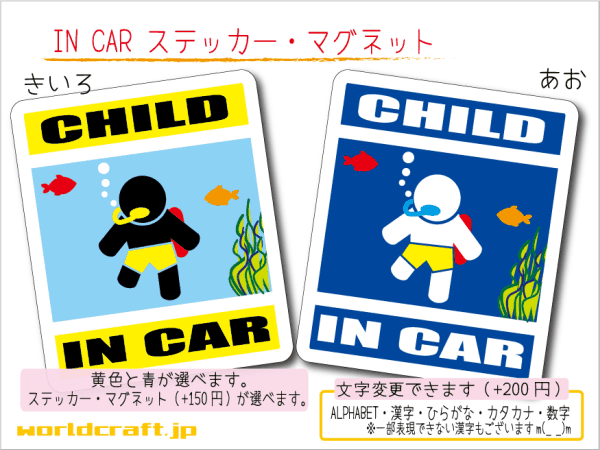 > ■CHILD IN CARステッカースキューバダイビング!■ダイバー KIDS 海 車に乗ってます カラー、ステッカー/マグネット選択可能☆かわいい