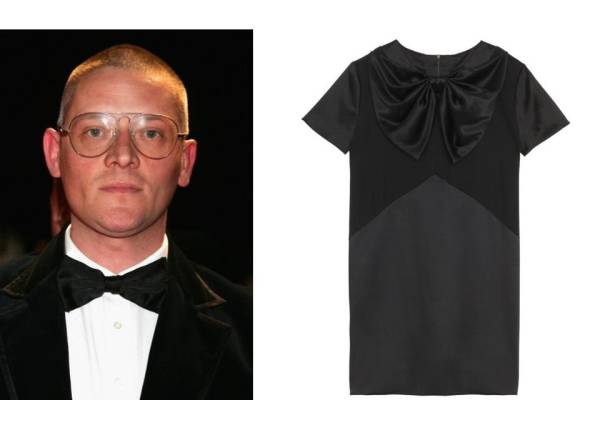 > ● フランス 限定 コラボ MONOPRIX Giles Deacon 黒 38 M 半袖 ワンピース 新品 ブラック モノプリ リボン 膝丈 エレガント フォーマル