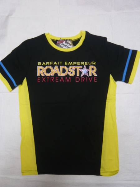 > 匿名配送 送料無料 新品 Barfait レーサー系 メンズ 半袖 Tシャツ ブラック×イエロー 黒 M カラフル ネオン 夏 派手