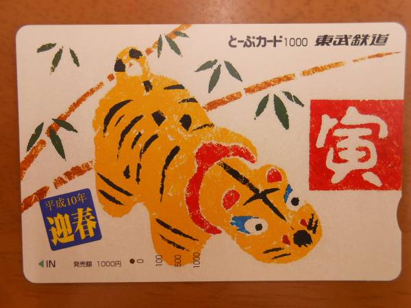 - ●使用済み/とーぶカード1000/1つ穴/東武鉄道/平成10年迎春