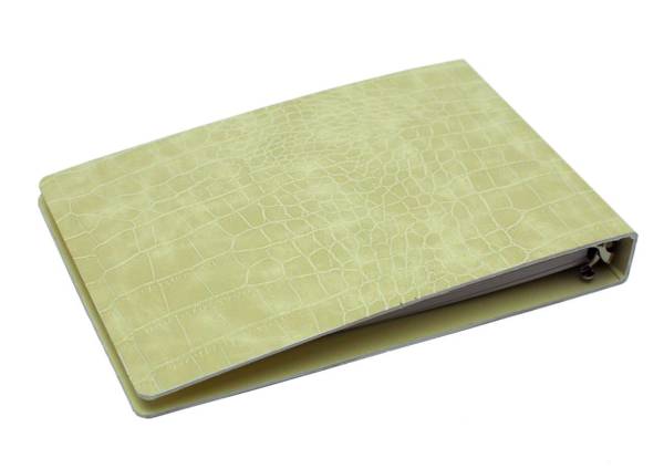 - 送料込み◆リサイクルレザー13穴リングバインダー◆クロコ型押しクリーム◆五線紙6段カード50枚付き◆コード進行