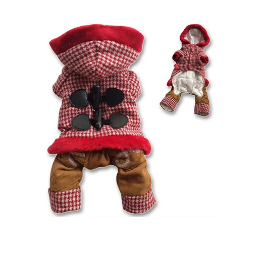 - 激安即決★暖か! 千鳥格子コートつなぎ 2L レッド★新品 ~7kg位
