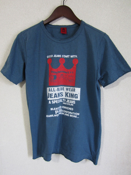 - イラスト プリント 半袖Tシャツ メンズM ブルー