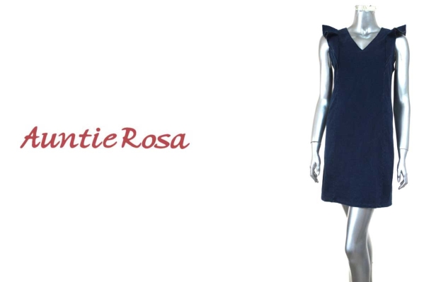 - 二点落札で送料無料! A31 Auntie Rosa アンティローザ デニム調 ストレッチ ノースリーブ ワンピース F レディース インディゴ ブルー