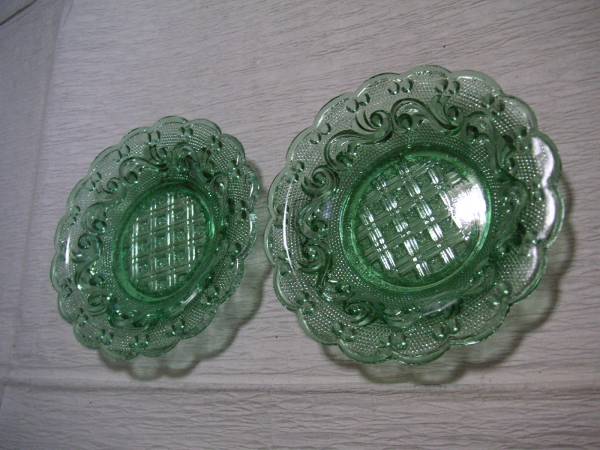 - 緑色唐草文小皿 バーミンガム製 2枚 英国 19世紀