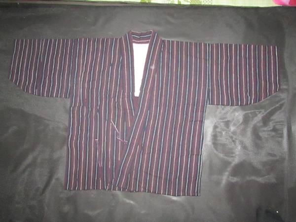 - (旧家・蔵出し)(古布・厚手縞木綿上着・NO3)貴重
