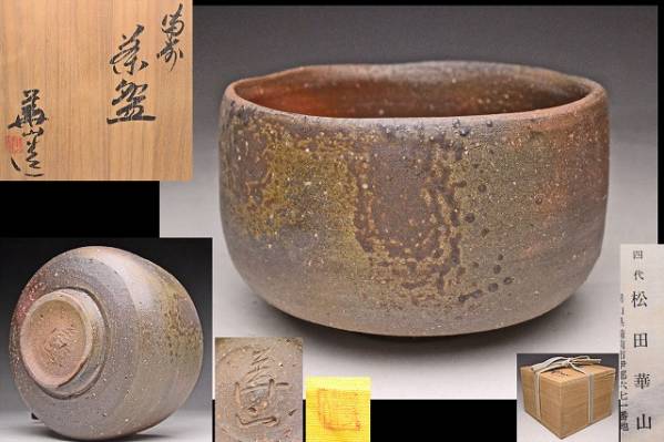 > 松田華山 ★ 備前窯変茶碗 ★ 共箱共布栞 ★ 物故巨匠 ★ 検 木目 備前 ★