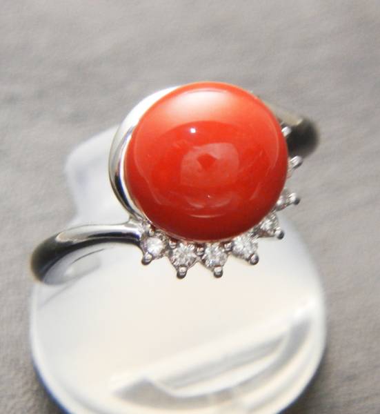 > 限定特価!新品 Pt900プラチナ 天然赤珊瑚 (サンゴ) 9.8mm ダイヤ リング