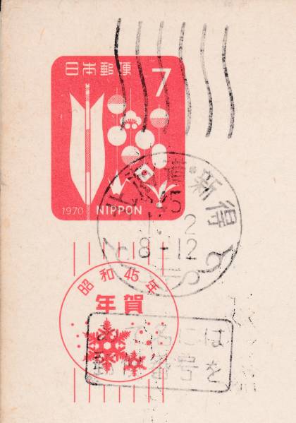 - t2387標語唐草機械印/北海道・新得45.1.2/あてなには
