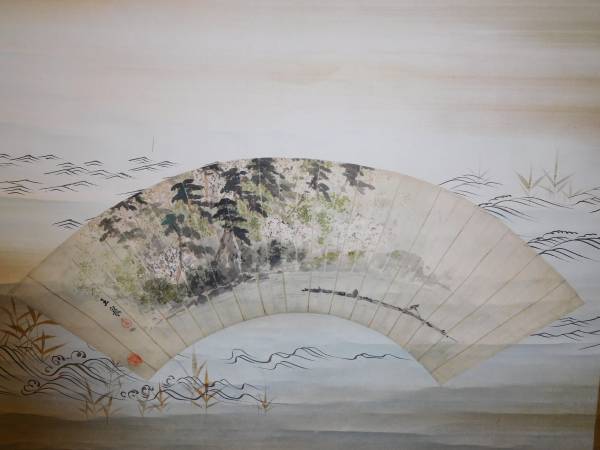 - 特価工芸品 掛軸 扇の図 山水画 送料無料 【Pza】 009-1