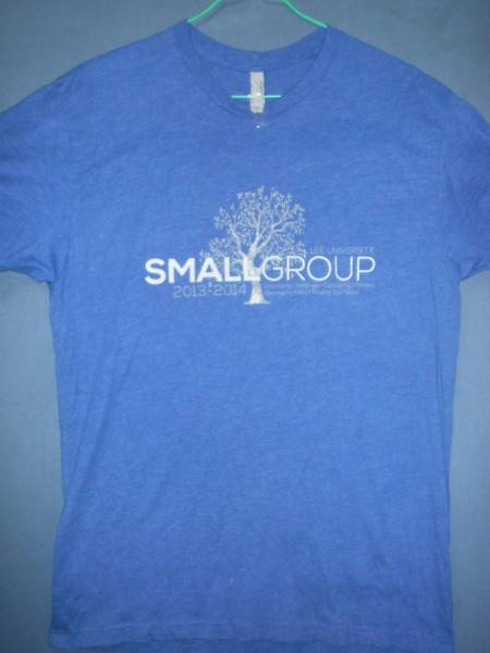 - ⑦ USA古着 サイズM 前後 SMALL GROUP 青色半袖収縮性有Tシャツ