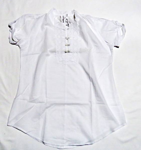 - ハンガリーモダンエスニックシャツ半袖袖白レースH