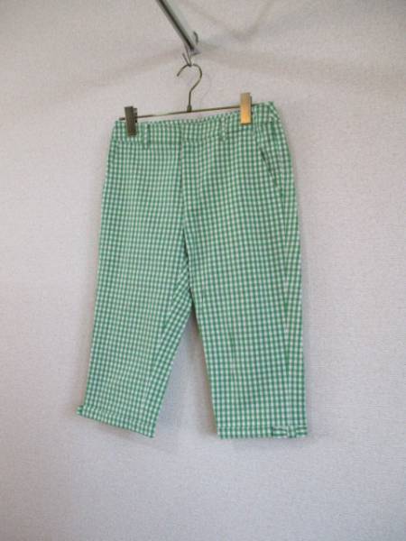 - IENA緑×白チェックスリム半端丈パンツ(USED)42116)
