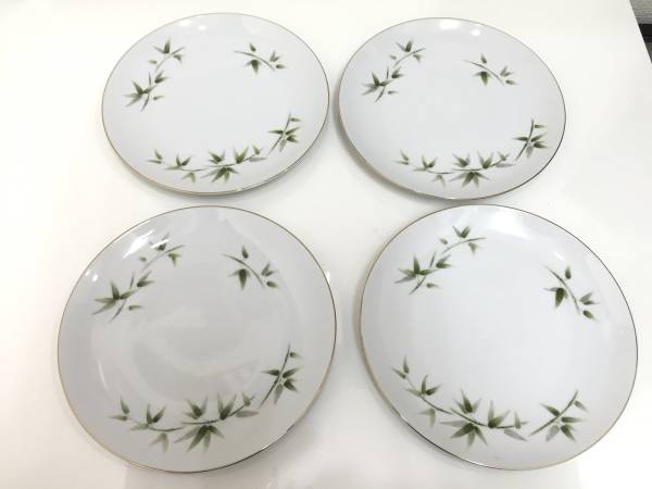 - 美品■ナルミ チャイナ 若竹 22.5cm プレート 同柄4枚 金縁 管理1606 L-5