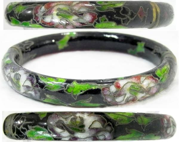 > 送料600円~(即決は送料無料) ヴィンテージ七宝焼きバングル ブレスレット(黒緑赤紫白ゴールド金具)アンティークブレス女性用レディース