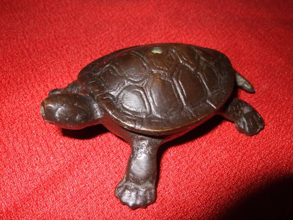 - 書道具 銅製 亀の水滴 在銘 2.5cmx8cm