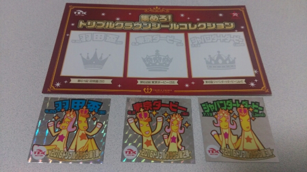> 2016年 TCK 大井競馬 トリプルクラウンシール 3枚フルコンプ 台紙付き 羽田盃 東京ダービー ジャパンダートダービー うまたせ ウマタセーヌ