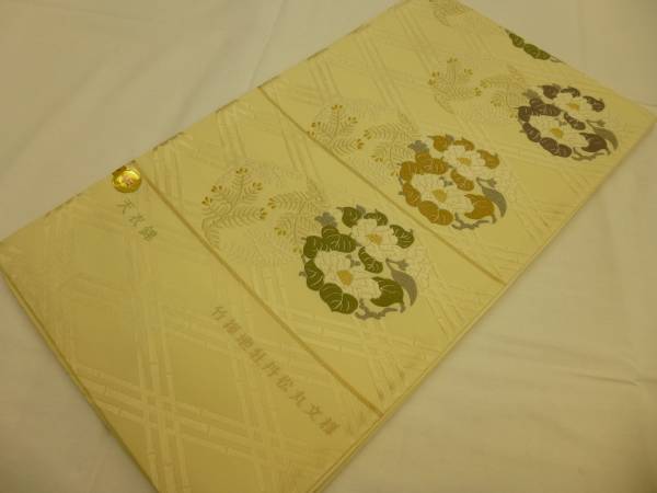 > 新品・未仕立て★京都西陣・いづくら製袋帯★竹襷地牡丹松丸文様