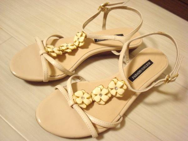 - 美品パラディスクルール 3つ白花チャーム サンダルヒール 23.0cm
