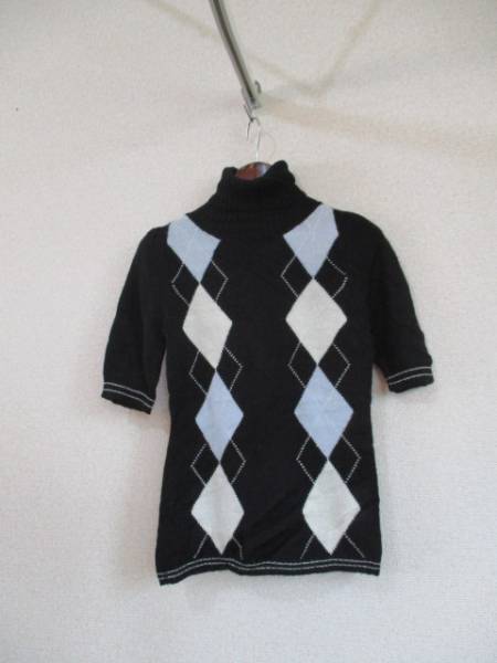 - RewdeRew黒アーガイル柄5分袖タートルニット(USED)90216