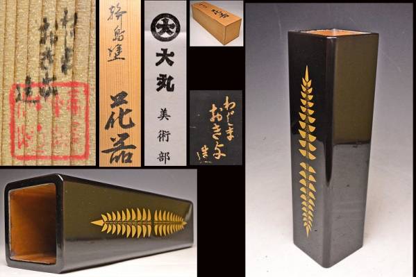 - 輪島塗 ★ おき与 造 ★ 黒漆 花器 ★ 共箱 栞 ★ 大丸百貨店購入作品 ★ 漆器 ★ 華道具 ★