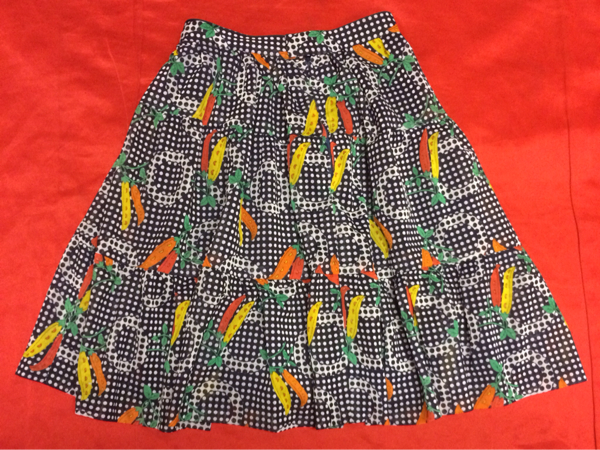 - 昭和レトロ古着ビンテージ70's唐辛子柄染み込みプリントスカート