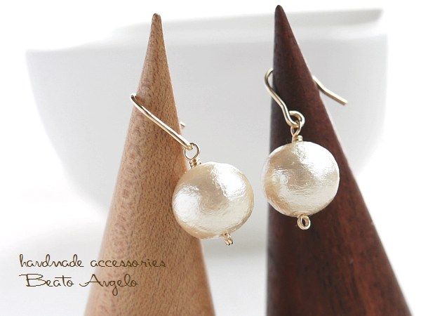- ◇◆+angelo+K14GF コットンパールの一粒ピアス(p-023)キスカ 10mm シンプル