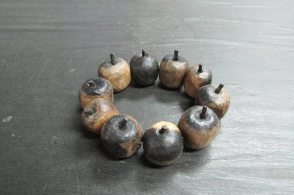 - 黒柿蝋仕上げぶちリンゴ10粒ブレスレット