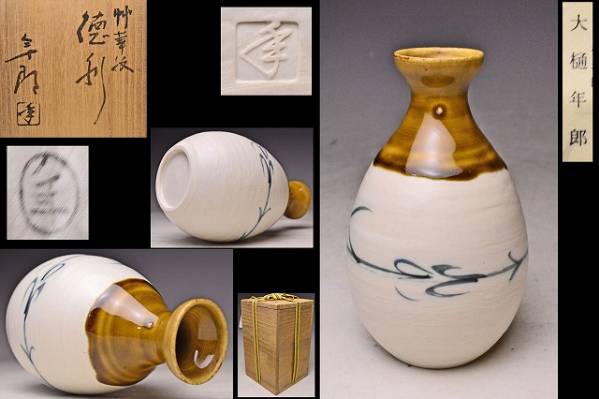 - 大樋年郎 ★ 大樋竹華文徳利 ★ 共箱栞 ★ 10代大樋長左エ門 ★ 酒器 ★