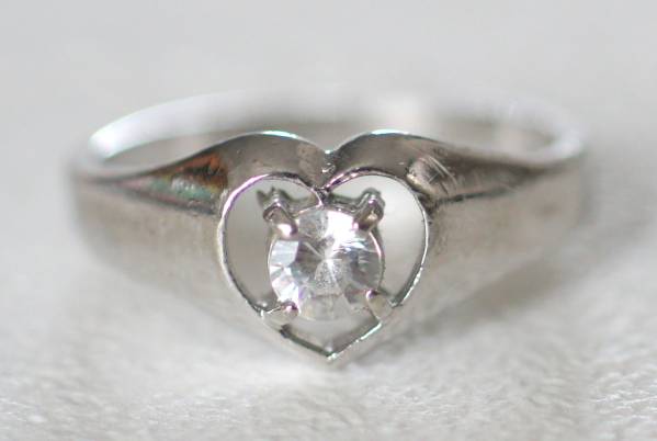 - ハートに一粒ジルコニア付きリング