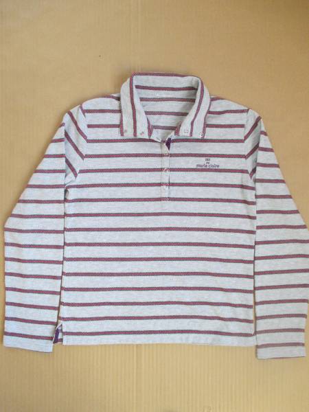 > marie claire マリクレール 長袖 ボーダー ポロシャツ グレー M