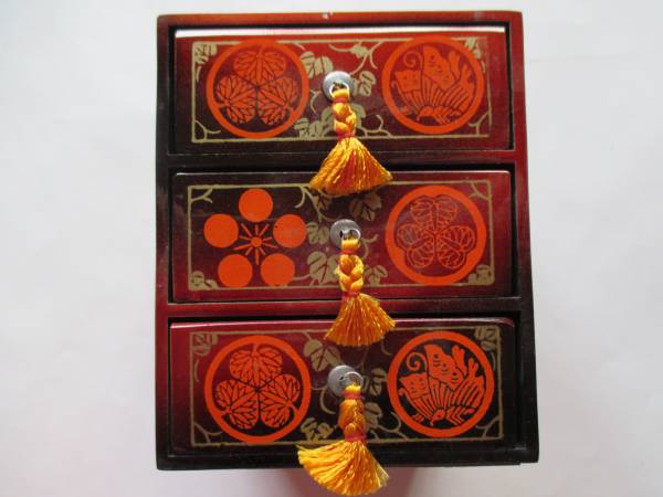 - 和物 レトロ 卓上 小物入 模様 ミニタンス 箪笥 小引出 3段 美品
