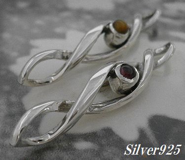 - シルバー925銀の天然石タイガーアイ&ガーネット付スクリュー ペア ペンダント/2個set
