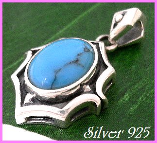 - シルバー925銀のターコイズ シールド ペンダント/100種以上有り