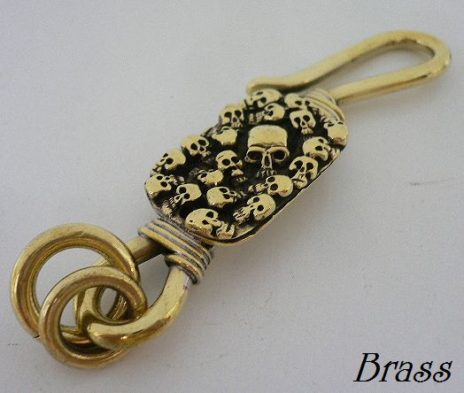 - 真鍮製Brassマルチ スカル プレート ブラス キーフック/キーホルダー