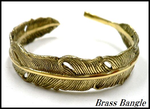 - 真鍮製Brassネイティブ フェザー ブラス バングル/フリーサイズ