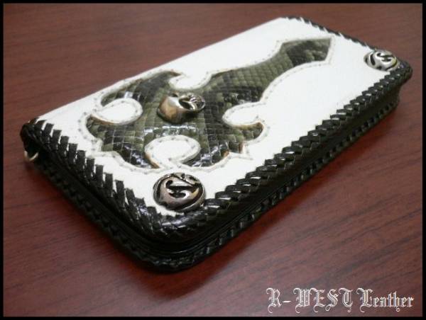 - 牛革×蛇革パイソン十字架クロス レザーウォレット/silver925スカル付