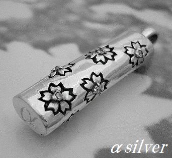 - シルバー925銀のサクラ桜スティック ペンダント ジルコニア付/α silver