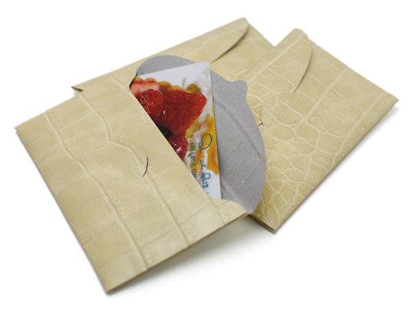 - 送料込み★リサイクルレザーで作ったミニ封筒3枚組★クロコ型押しクリーム★名刺入カードケース