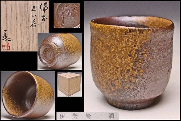 - 伊勢崎満 ★ 備前ぐい呑 ★ 共箱栞 ★ 検 人間国宝 伊勢崎淳 伊勢崎陽山 ★