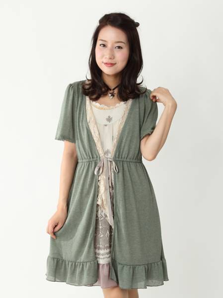> 297◇ロングカーデ重ね風ワンピ ベージュ グリーン 緑 axes femme アクシーズ ファム MB351X12 ワンピース チュニック